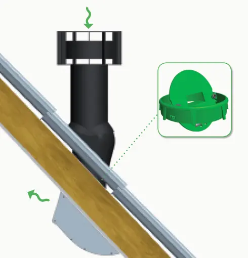 De RoofMax ZR is een zelfregelende ventilatiecombinatie voor een gecontroleerde natuurlijke toevoer van verse lucht in ruimtes onder een hellend dak van 30° tot 55°. De RoofMax ZR bestaat uit een dakdoorvoer met zelfregelende klep en een geluiddempend binnenrooster.