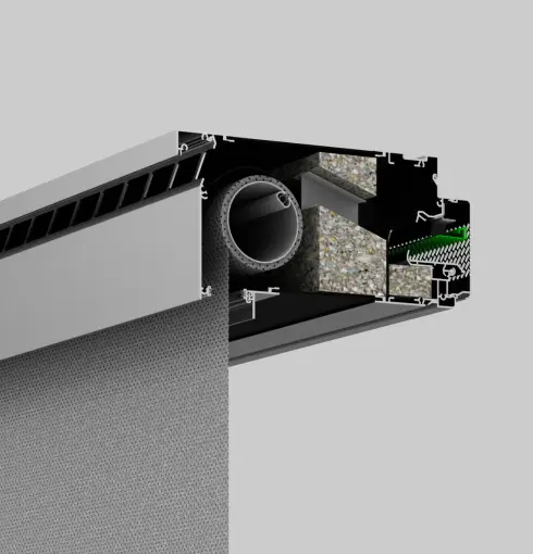 Het aluminium rooster beschikt standaard over akoestisch dempingsmateriaal wordt onzichtbaar achter een buitenmuur (in de spouw) geplaatst. Het textieldoek is eenvoudig uitneembaar vanaf de binnenzijde. Het doek is stormvast en ook beschikbaar in CAP-uitvoering. De TronicTwin 120 wordt steeds motorisch uitgevoerd.